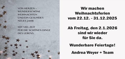 Bitte beachten Sie unsere neuen Öffnungszeiten ab 01.01.2024!